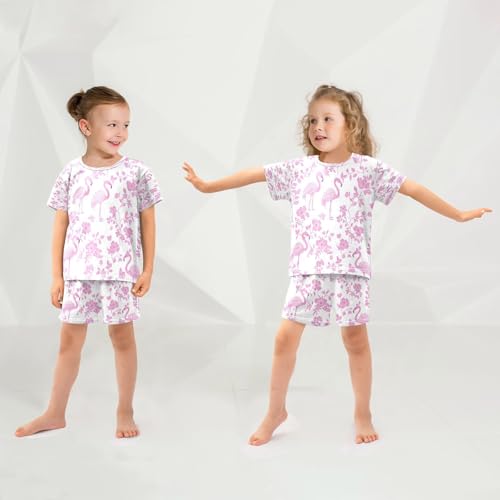senya Short Sleeve Pajamas Sets Summer Cotton Sleepwear Flamingo Pink Leaves 2