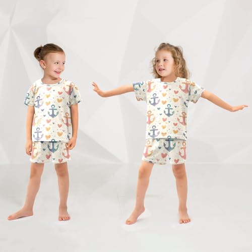 ALAZA Rainbow Hearts Anchor Pajama Set Short Sleeve Sleepwear Soft Lounge Nightwear 1