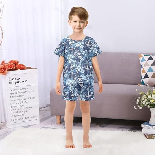 ALAZA Nautical Anchor Blue Flowers Pajama Set Short Sleeve Sleepwear Soft Lounge Nightwear 1