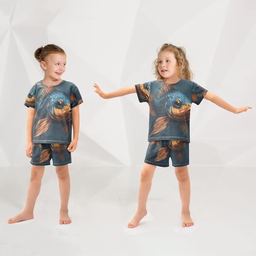 ALAZA Funny Fish Pajama Set Short Sleeve Sleepwear Soft Lounge Nightwear 3