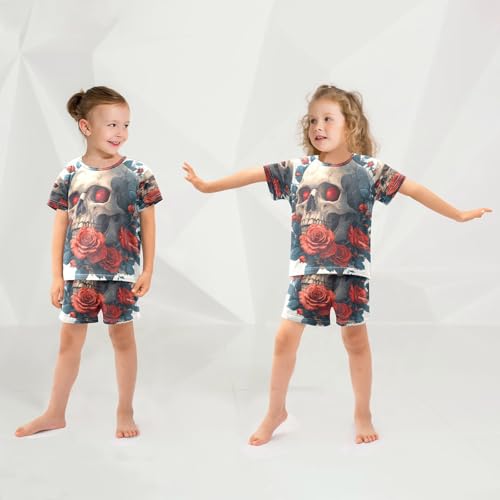 senya Short Sleeve Pajamas Sets Summer Cotton Sleepwear Red Flower Skull 1