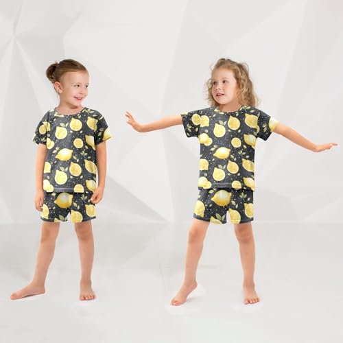 ALAZA Lemon on Black Background Pajama Set Short Sleeve Sleepwear Soft Lounge Nightwear 3