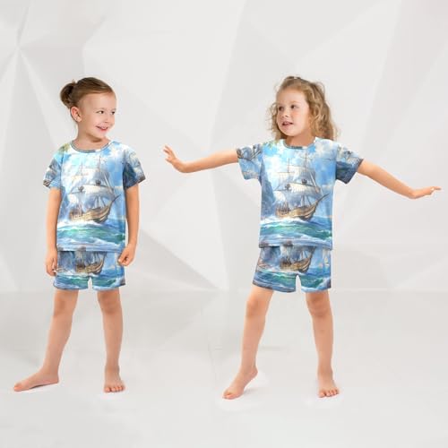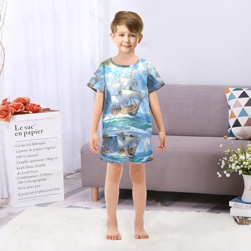 ALAZA Nautical Ship Sea Landscape Pajama Set Short Sleeve Sleepwear Soft Lounge Nightwear 1