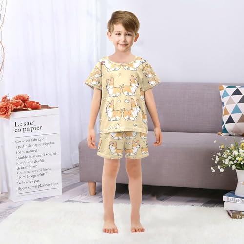 senya Short Sleeve Pajamas Sets Summer Cotton Sleepwear Corgi Bones 1