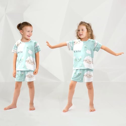 senya Short Sleeve Pajamas Sets Summer Cotton Sleepwear Cute White Sheep 2