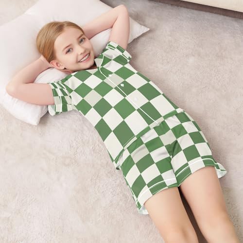 senya Pajama Sets Silky Button Down Nightwear Sleepwear Size 5-14 Years Green and White Checkered 1