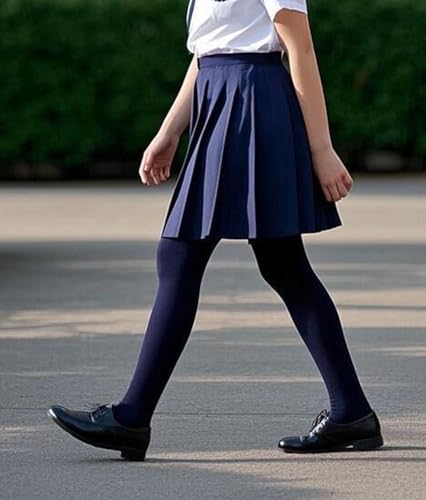 LINLIN FAN Girls Tights Kids Cotton School Dress Tights Navy Blue Black White 7