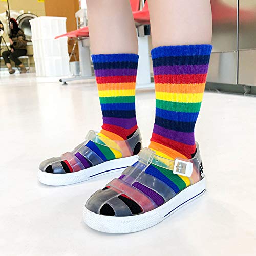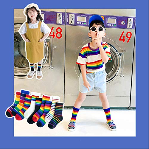 EIAY Shop Little Girls' Boys' Rainbow Stripes Cotton Crew Socks 7