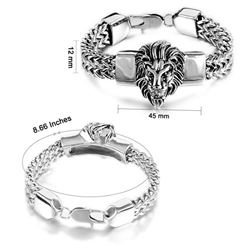 More information about Mens Bracelet Stainless Steel Heavy 12mm Double Franco Chain Lion Head Bracelet Jewelry Men Biker…