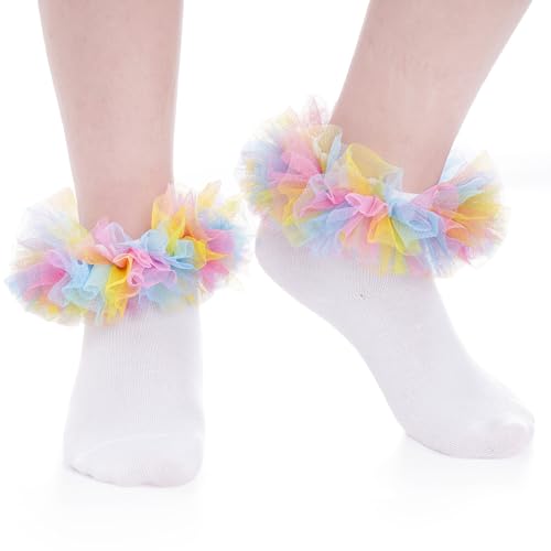 Girls Ruffle Socks Colorful Frilly Tutu Ruffle Lace Dress Socks for Toddler Little Girls,1-10 Years,1 Pack 7