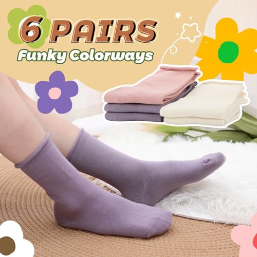 JAKIDAR Girls Crew Seamless Socks Kids Casual Dress Cotton Socks 6 Pairs 6