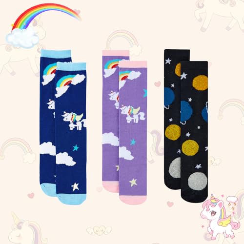 • Fun and Engaging Designs: Featuring vibrant and unique patterns like soccer balls, unicorns, and cosmic galaxies, these kids knee high socks are appealing to both boys and girls. The clear prints and playful designs make them a favorite among kids, encouraging them to wear them regularly