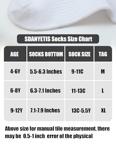• Size Tips: Our Soft crew socks for both boys and girls from kids 4T to 12 years old. Our sock sizes are true to size chart. Ages are for reference only. If you have any problem in size, or if you have any quality problem, please let us know