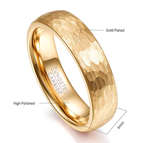 Vakki Gold Hammered Tungsten Ring 6mm/8mm Wedding Band for Men Women Hammered Finish Comfort Fit Size 5-12 6
