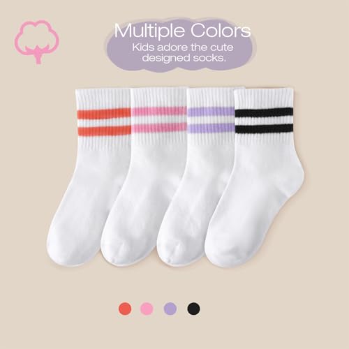DRESHOW BQUBO 4 Pairs Kids Girls Pink Crew Athletic Sport Socks Soft Cotton Ankle Socks School Uniform Sock for 4-10 Years 7