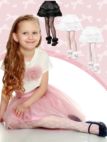 3 Pairs Girls Lace Tights for Kids Bow Sheer Fishnet Stockings Dance Pantyhose for Halloween Christmas 2