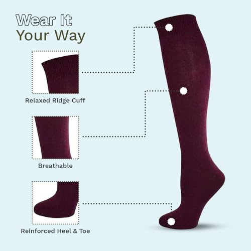 3 Pairs Girls Combed Cotton Knee High Socks - School Uniform Sock Long Socks for Girls, Teens and Women - Seamless Dress Sock 3
