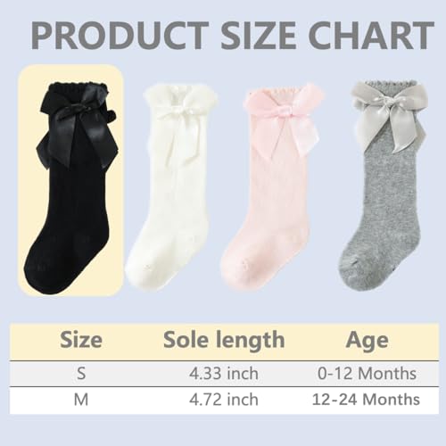 Baby Girl Knee High Socks - Toddler Long Socks with Bow & Ruffles for Infants 4