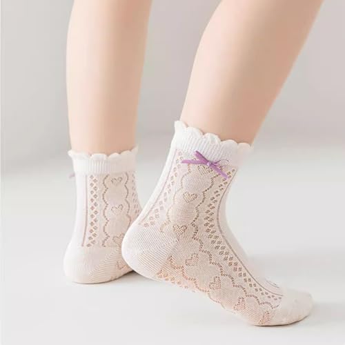 HOT ! Girls' Summer Thin Cotton Princess Socks 5 Pairs, Purple Mesh Floral Kids Anklet Mid-Calf Socks with Eyelet Trim