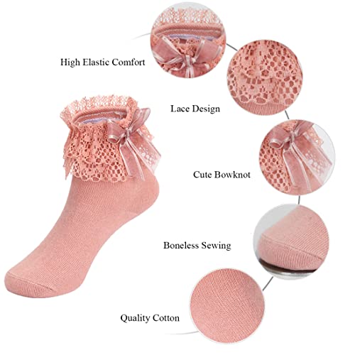 Toddler Girls Ruffle Socks Little Baby Cute Bowknot Lace Dress Socks 6 Pairs 4