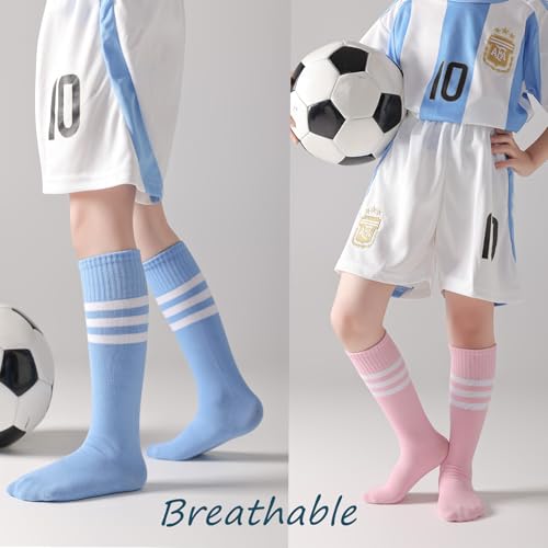 Kids Soccer Socks-Toddler Striped Knee High Socks for Girls Boys,Cotton Athletic Baseball Softball Tube Sock 3