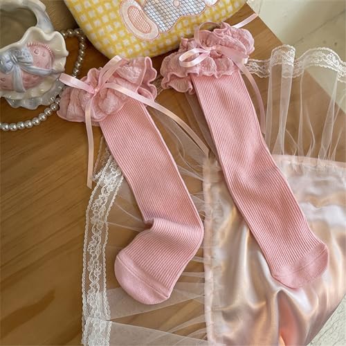 Breathable Puff Lace Socks For Girl School Kid Kneehigh Stretchy Cotton For Spring Dress Midcalf Party Socks 7
