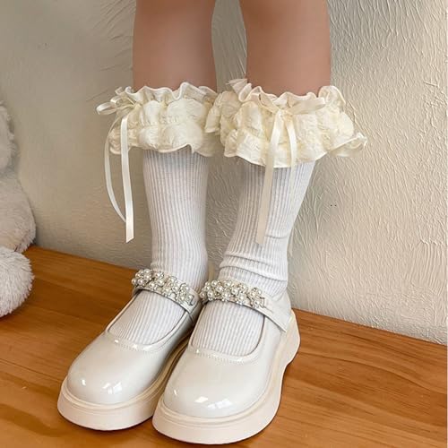 More information about Breathable Puff Lace Socks For Girl School Kid Kneehigh Stretchy Cotton For Spring Dress Midcalf Party Socks