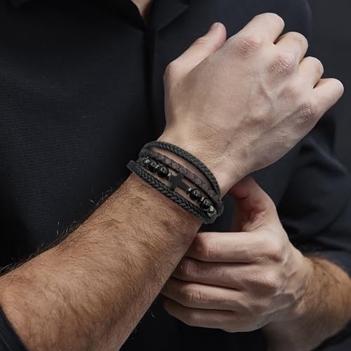 • Leather & Black Onyx Blend: Braided leather band paired with black onyx beads for grounding energy and rugged style.
