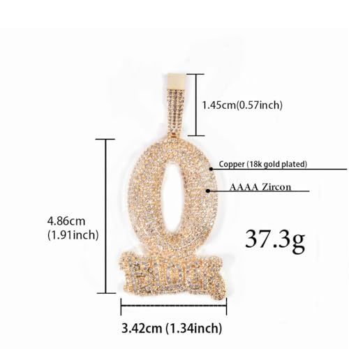 Hip-hop jewelry English letter O-shaped BLOCK copper inlaid zircon 18k gold-plated necklace pendant with 3mm 24-inch stainless steel chain 1