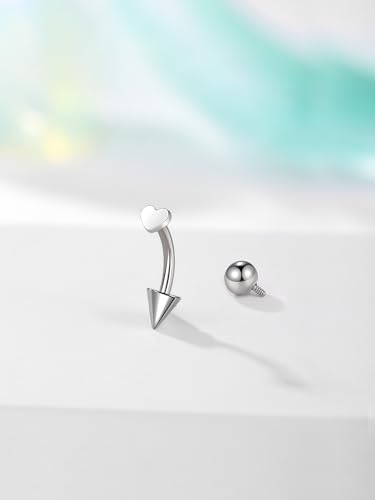 Aumeo Titanium Eyebrow Rings 16G Curved Barbell Piercing Jewelry Heart Star Vertical Labret Lip Jewelry Daith Rook Earrings for Women Men 8mm 10mm 4