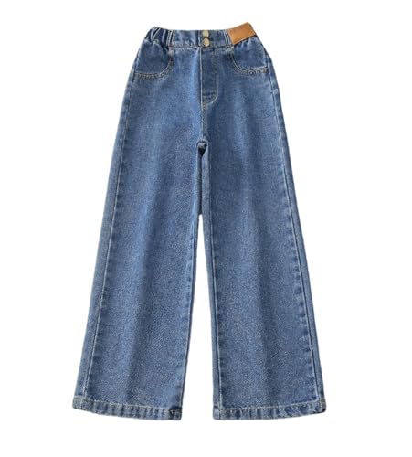 More information about Girls Baggy Wide Leg Jeans Elastic Waist Casual Washed Denim Pants Age 5-14