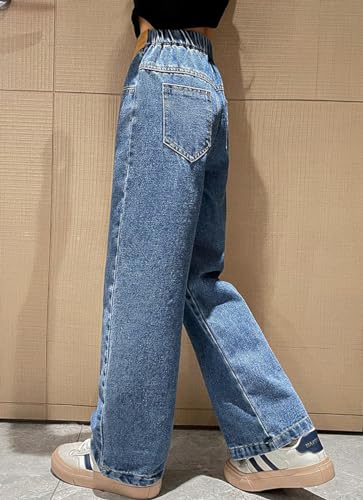 Girls Baggy Wide Leg Jeans Elastic Waist Casual Washed Denim Pants Age 5-14 6