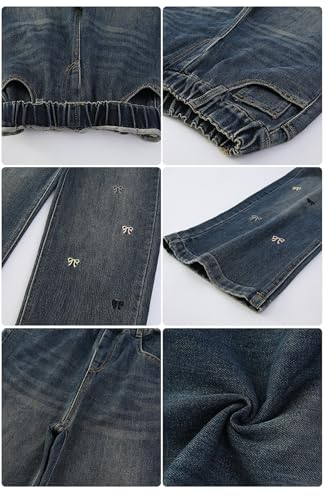 ASHER FASHION Girls Bow Embroidered Jeans Cute Bow Embroidery Wide Leg Denim Pants Fall Loose Jean Trousers Outwear Clothes 6