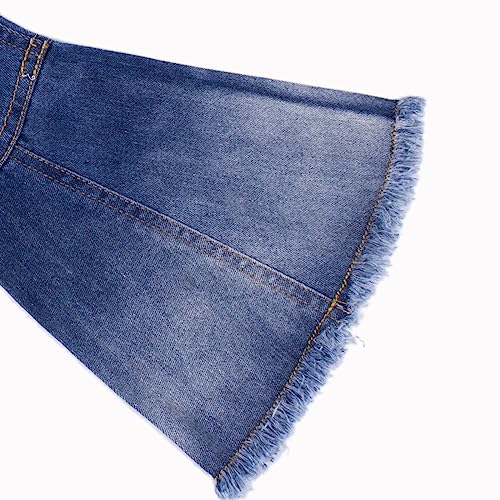 Toddler 𝐑uffle Bell Bottoms Tassel 𝐅rayed 𝐇em Wide Leg Flared Pants Girls Fall Elastic Waisted Casual Jeans 4