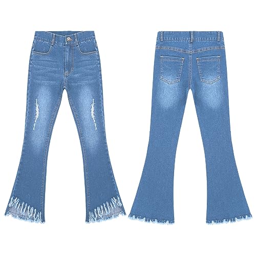 TiaoBug Kids Girls Ripped Flare Jeans Raw Hem Denim Bell Bottom Trousers Retro Washed Wide Leg Distressed Denim Pants 4
