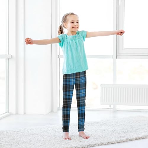 Girls Leggings Blue Black Tartan Plaid Kids Length Leggings Pants Toddler Athletic Soft Tights Trousers 4T 7