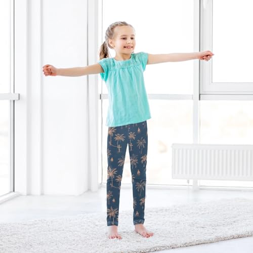 Girls' Athletic Leggings Ankle Length Yoga Dance Pants Kids Teen 4T Sailboat Palm Trees 6