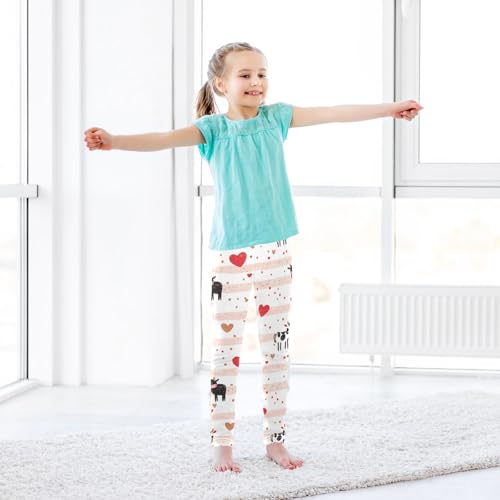 Cow Stripes Red Hearts Girls Casual Leggings for Kids Printed Long Pant Bottoms Stretch and Soft 6