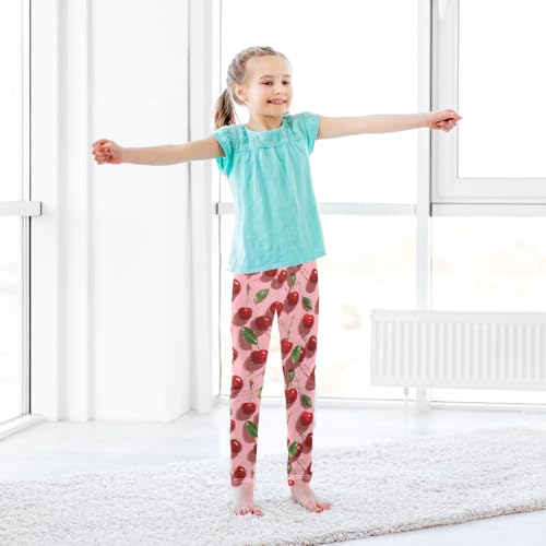 Girls Leggings Cherry Leaves Pink Soft Toddler Leggings for Girls Kids Pants Size 4T-10T 5