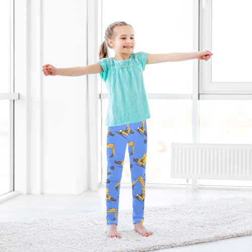 ALAZA Girls' Leggings Children's Yoga Pants Skinny Printed Dance Excavator Blue Comfortable 4T 6