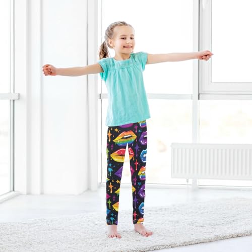 Rainbow Girls' Leggings Toddler Doodles Colored Lips Kids Yoga Pants Dance Active Tights 4T 6