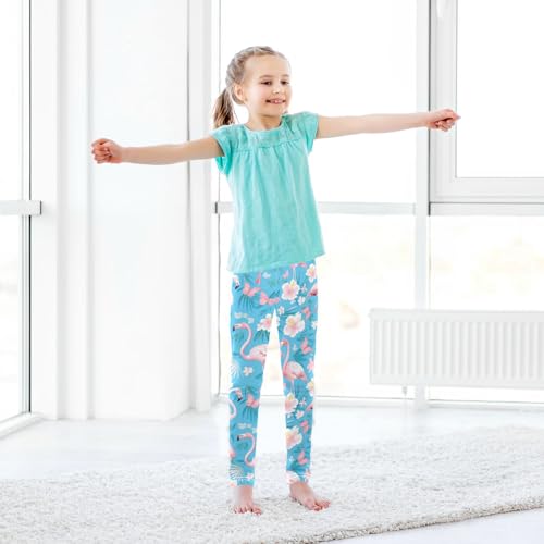Wusikd Pink Flamingos Girls' Leggings Toddler Doodles Butterflies Flowers Kids Yoga Pants Dance Active Tights 4T 7