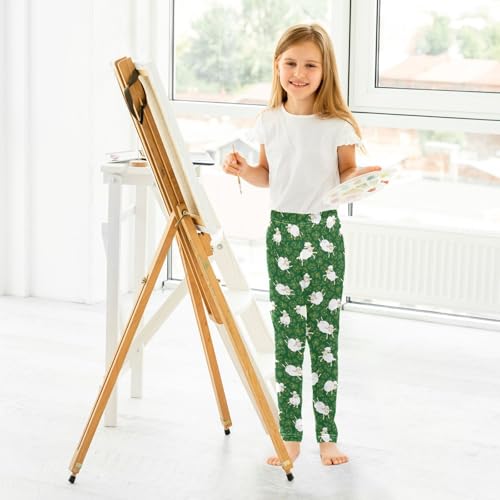 HOT ! Happy Sheep in Green Leafy Meadow Girls Leggings,Workout Leggings for Girls Toddler Athletic Leggings Size for 3-10T