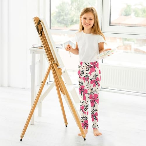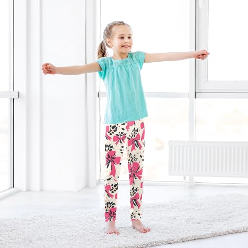Pink Bow Leopard Print Girls Leggings Soft Stretch Workout Yoga Dance Pants for Kids Casual Tights 6