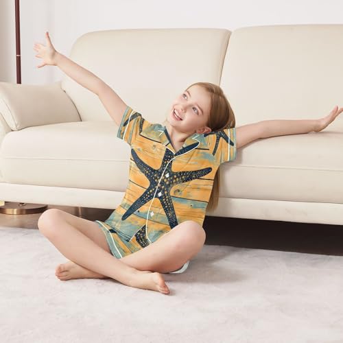 HOT ! senya Pajama Sets Silky Button Down Nightwear Sleepwear Size 5-14 Years Starfish Board