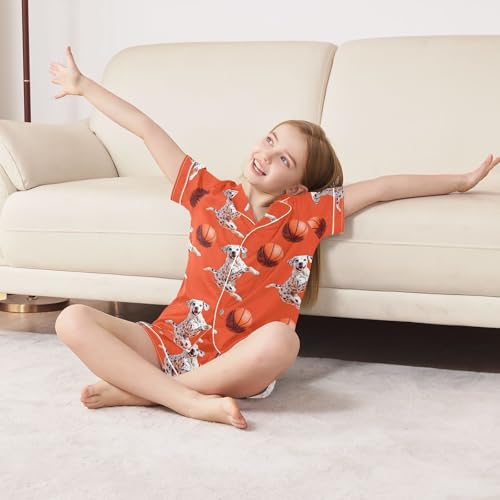 ALAZA Spotted Dog Basketball Satin Pajamas Set Short Sleeve Button Down Sleepwear Summer Pjs 2 Piece 1