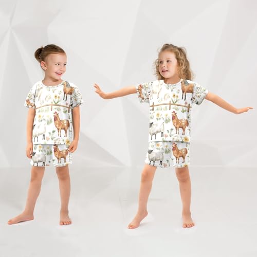 Pajama Sets Short Sleeve Farm Animals with Flowers Soft Cotton Summer Sleepwear 2 Piece PJS Size 5-14T 1