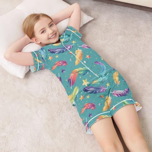 senya Colorful Feather Star Satin Summer Pajama Sets Silk Short Sleeve Button Down Sleepwear 1