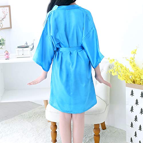 Toddler Girls Solid Satin 𝗦ilk Kimono 𝐁𝗿obe with Belt for Wedding Party Spa Kids Comfy Soft 𝗣a𝗷amas 𝗦leepwear 6