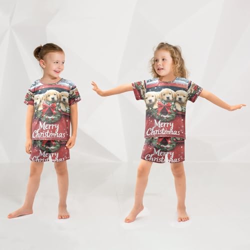 ALAZA Christmas Golden Dog New Year Pajamas Set Short Sleeve Cotton Sleepwear Summer Pjs 2 Piece 5-14Y 2
